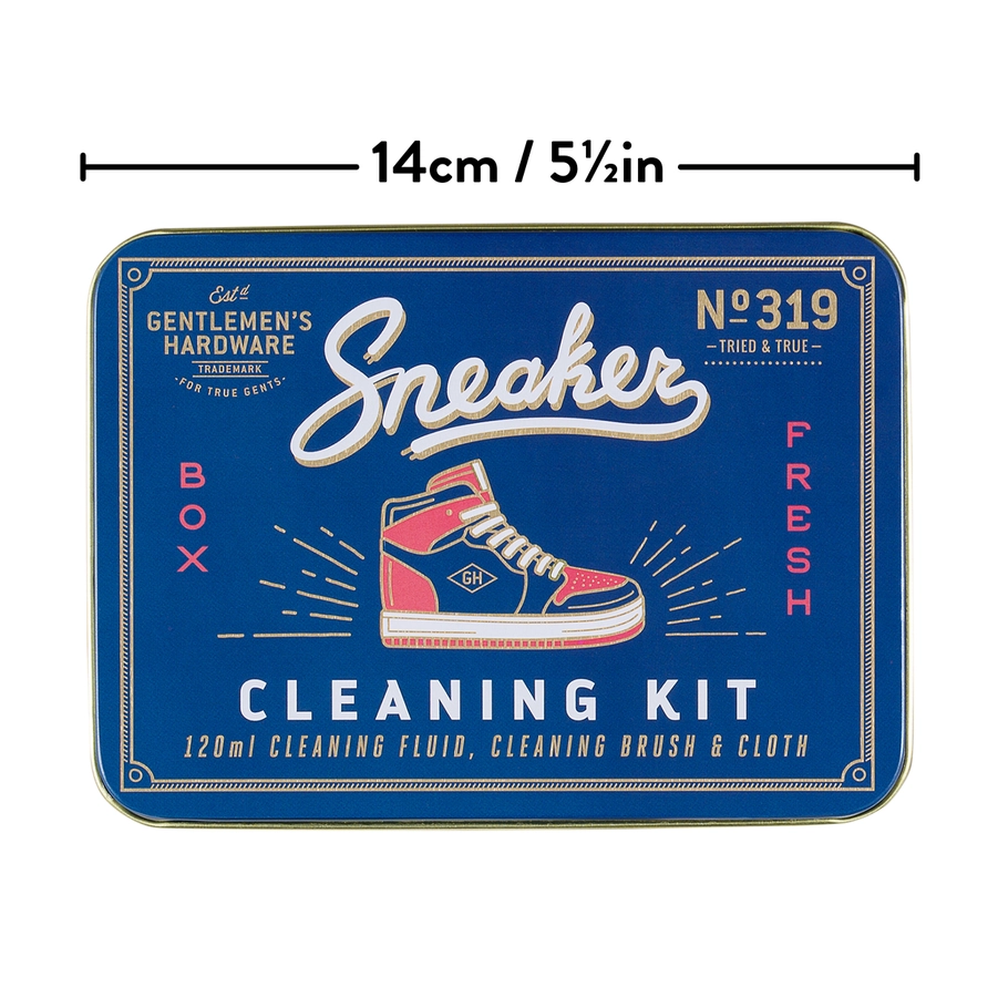 Sneaker Cleaning Kit includes 4 fl oz Cleaning Fluid, Cleaning Brush & Cloth. Packaged in giftable tin.