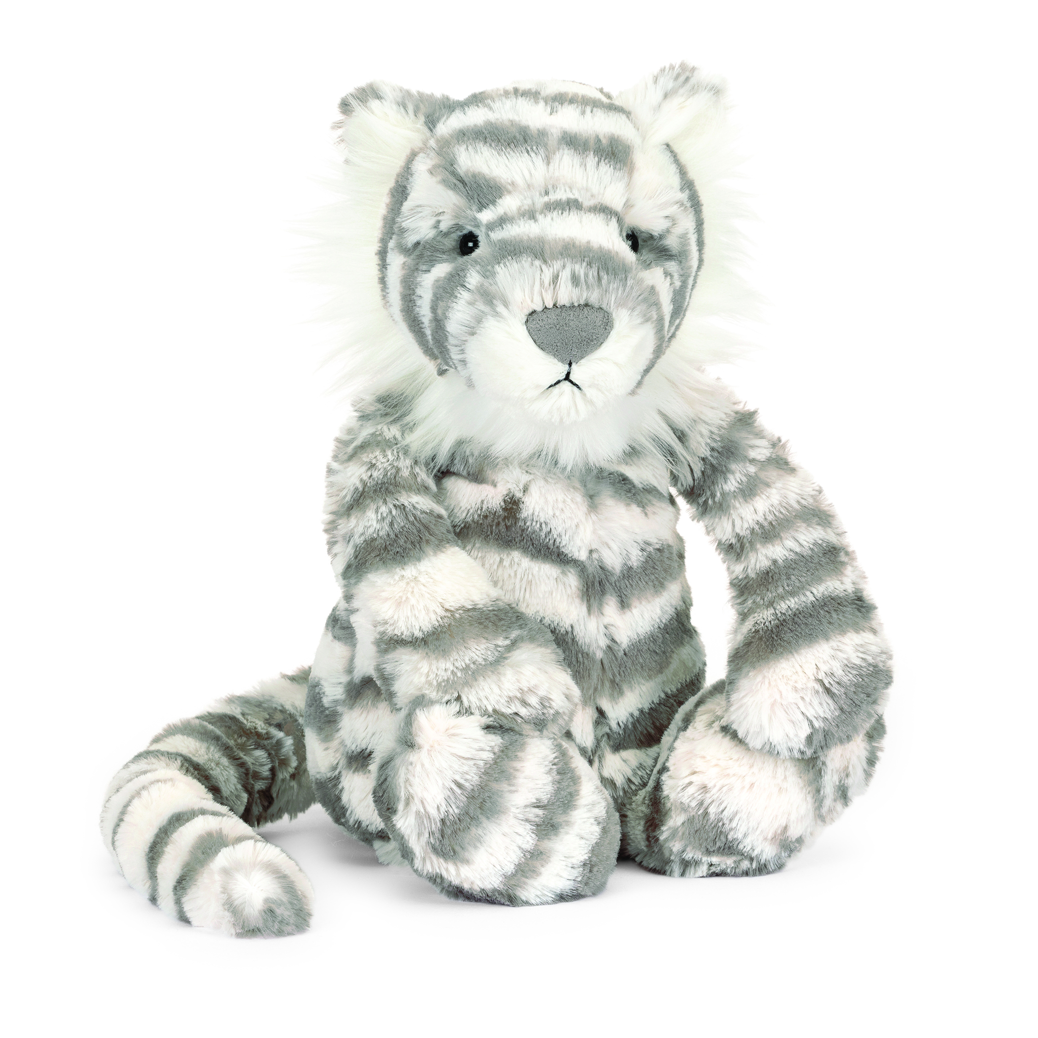 Winter is here, and so is Bashful Snow Tiger! Super soft in cream and grey stripes, this tiger pal also has fluffy whiskers and ear tufts, perfect for snuggling!