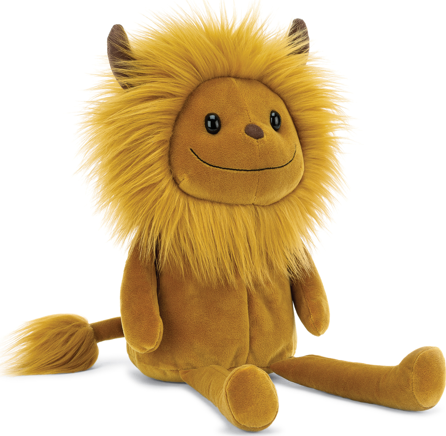 Zeke Monster can’t help but giggle – being a wriggly monster is fun! With a mustard tum and sunny mane, tasselly tail and velvety horns, Zeke is soft and not scary at all!